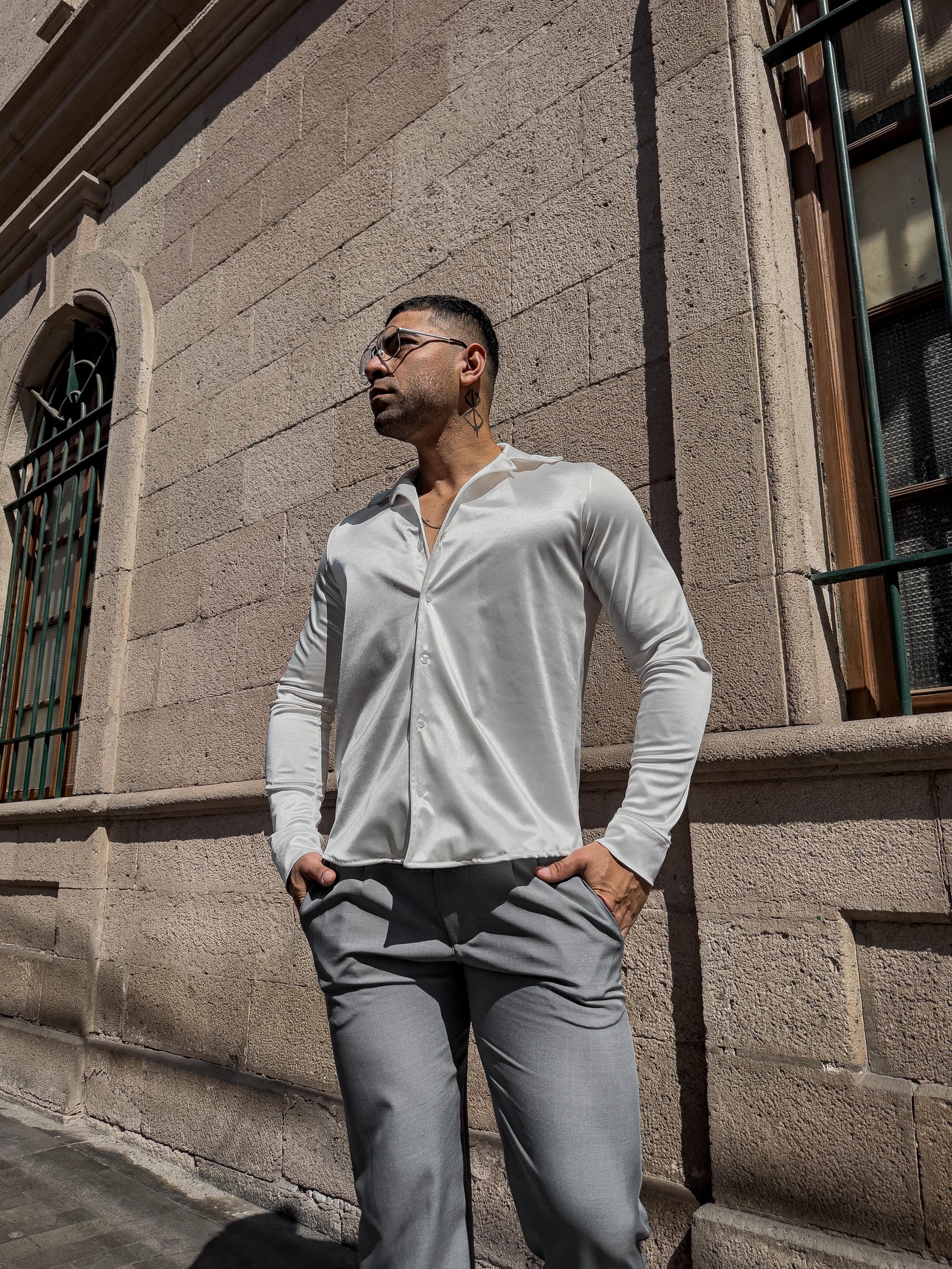 CAMISA SATINADA transforma cualquier ocasión en una declaración de estilo. Inspirada en el lujo silencioso del estilo Old Money, esta prenda satinada es sinónimo de elegancia sofisticada y presencia segura.
